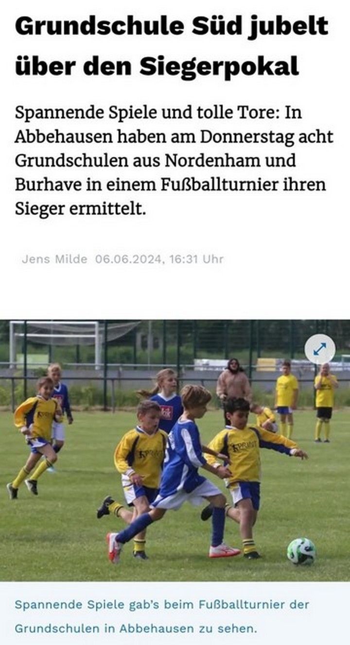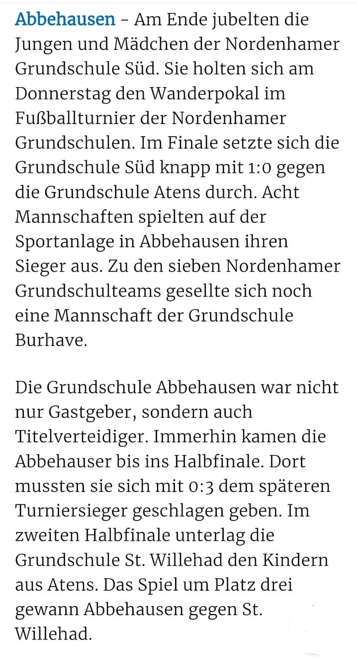 Kreiszeitung vom 20.06.2016 - Südschule bleibt ungeschlagen »